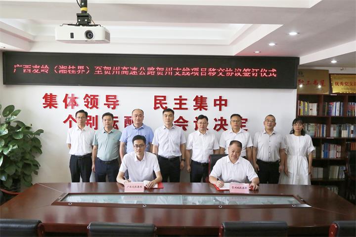 賀州支線西接麥賀高速公路主線,東經連賀高速公路與二廣高速相連,公路建設打通了旺高工業基地、西灣工業基地與華北、華中及沿海地區的聯系通道,工程建設對優化賀州市路網結構,構建廣西東部和中部地區的重要門戶和樞紐,落實賀州市“十四五”規劃及綜合交通運輸發展規劃,提升高速公路過境效率,加速助力實施鄉村振興,促進賀州市經濟社會發展具有重要意義。項目移交協議的簽訂,標志著項目正式移交廣西交投集團實施,為項目快速推進打下堅實基礎。簽約儀式后,雙方還就如何加快項目建設,不斷深化交流合作進行了探討。