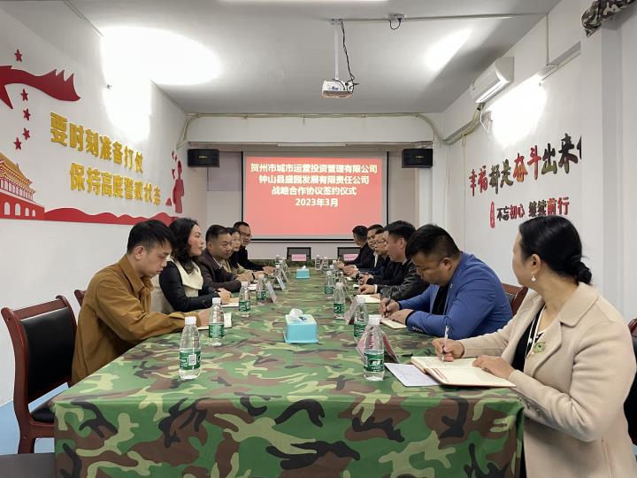 3月1日下午,賀州市城市運營投資管理有限公司與鐘山縣盛園發(fā)展有限責任公司成功簽署戰(zhàn)略合作協(xié)議。城市運營公司黨支部書記、負責人熊敏與鐘山盛園公司總經(jīng)理張堅分別代表雙方進行簽約。