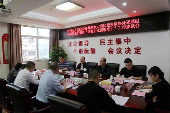 賀州市人民政府駐粵港澳大灣區(qū)經(jīng)貿(mào)聯(lián)絡(luò)處課題組到城投集團(tuán)開展調(diào)研2022-05-10