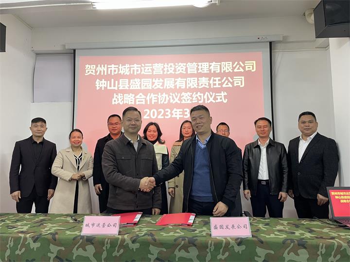 3月1日下午,賀州市城市運營投資管理有限公司與鐘山縣盛園發展有限責任公司成功簽署戰略合作協議。城市...