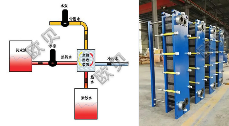 印染廠排放廢水溫度不會太低,水量也不會少,大多在50℃以上。目前實施比較多的,還是把廢熱回收后用于預熱新水,全年預估可省30%-70%的費用。