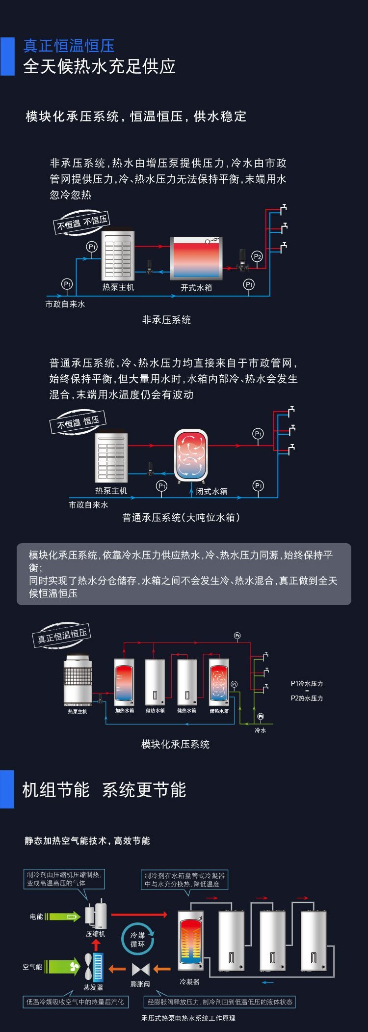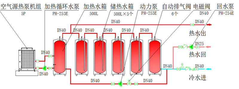 3、根據(jù)所用工程特性,模塊化逐層供應(yīng)熱水,變?nèi)萘抗┙o,減少不必要的電費(fèi)損失。